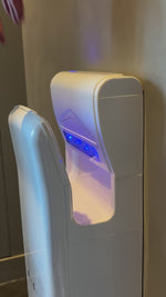 De Higestone handdroger Premium werkt met een infraroodsensor. Zodra je je handen in de droger houdt, schakelt hij automatisch in. Haal je je handen weg, dan schakelt hij vanzelf weer uit.